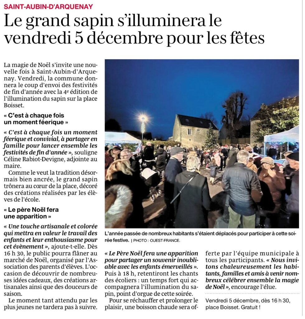 Point Presse Ouest-France 29-11-2025 Ouest-France 15-11-2025 brassens 2025 Ouest-France 25-09-2025 Ouest-France 04-09-2025 Ouest-France 02-09-2025 Ouest-France 05-07-2025 Ouest-France 27-06-2025 Ouest-France 26-06-2025 Ouest-France 25-06-2025 Ouest-France 04-06-2025 Ouest-France 30-05-2025 Liberté le bonhomme libre 29-05-2025 Liberté le bonhomme libre 27-11-2024 Ouest-France 20-11-2024 Ouest-France 29-10-2024 Liberté le bonhomme libre 24-10-2024 Ouest-France 01-10-2024 Ouest-France 16-09-2024 Ouest-France 06-09-2024 Ouest-France 02-09-2024 Ouest-France 26-08-2024 JUKEBOX 27-07-2024 Liberté le bonhomme libre 13-06-2024 Ouest-France 07-06-2024 Ouest-France 31-05-2024 Ouest-France 18-05-2024 Ouest-France 17-05-2024 Ouest-France 08-05-2024 Ouest-France 06-05-2024 Ouest-France 09-04-2024 Liberté le bonhomme libre 04-04-2024 Ouest-France 30-03-2024(2) Ouest-France 30-03-2024 Liberté le bonhomme libre 28-03-2024 Liberté le bonhomme libre 14-03-2024 Liberté le bonhomme libre 29-02-2024 Liberté le bonhomme libre 29-02-2024(2) Liberté le bonhomme libre 29-02-2024(3) Ouest-France 27-02-2024 Ouest-France 28-02-2024 Liberté le bonhomme libre 08-02-2024 Liberté le bonhomme libre 01-02-2024 Liberté le bonhomme libre 01-02-2024 (2) Ouest-France 22-01-2024 Ouest-France 04-12-2023 Ouest-France 02-12-2023 Liberté le bonhomme libre 30-11-2023 Ouest-France 15-11-2023 Ouest-France 04-11-2023 Ouest-France 03-11-2023 Liberté le bonhomme libre 25-09-2025 octobre rose 2023 (1) Liberté le bonhomme libre 21-09-2023 Ouest-France 16-09-2023 oUEST-fRANCE 09-09-2023 Liberté le bonhomme libre 31-08-2023 Ouest-France 31-08-2023 Ouest-France 10-08-2023 Ouest-France 21-08-2023 Liberté le bonhomme libre 27-07-2023 Ouest-France 14-07-2023 Ouest-France 13-07-2023 Ouest-France 06-07-2023 Ouest-France 06-06-2023 Ouest-France 05-06-2023 Ouest-France 27-05-2023 Ouest-France 13-04-2023 Liberté le bonhomme libre 11-05-2023 Ouest-France 07-04-2023 Ouest-France 01-04-2023 Liberté le bonhomme libre 23-03-2023 Liberté Le bonhomme libre 16-03-2023 (2) Liberté Le bonhomme libre 16-03-2023 Liberté Le bonhomme libre 16-03-2023 (3) Ouest-France 14-03-2023 Ouest-France 13-03-2023 Ouest-France 10-03-2023 Ouest-France 07-03-2023 Ouest-France 30-01-2023 Ouest-France 26-01-2023 Ouest-France 20-01-2023 Ouest-France 05-11-2022 octobre rose 14-11-2022 Ouest-France 27-10-2022 Ouest-France 11-10-2022 Ouest-France 06-10-2022 Ouest-France 26-09-2022 Ouest-France 16-09-2022 Ouest-France 24-08-2022 Ouest-France 19-08-2022 Ouest-France 29-07-2022 Ouest-France 06-07-2022 Ouest-France 14-06-2022 Ouest-France 07-06-2022 Ouest-France dawson 07-06-2022 Ouest-France lofi 07-06-2022 Ouest-France 23-05-2022 Liberté le bonhomme libre 05-05-2022 Ouest-France 02-05-2022 Ouest-France 27-04-2022 Ouest-France 04-04-2022 Ouest-France 30-03-2022 Ouest-France 21-03-2022 Ouest-France 09-03-2022 Ouest-France 16-03-2022 Ouest-France 11-03-2022 Ouest-France du 09-03-2022 Ouest-France 07-03-2022 Ouest-France 02-03-2022 article Ouest-France du 25-02-2022 Saint-Aubin d’Arquenay – Le château prend forme Ouest-France 27-01-2022 Ouest-France 10-12-2021 Ouest-France 06-12-2021 Ouest-France 04-10-2021 ARTICLE OUEST FRANCE DU 22/06/2021 – DEPART ANNICK ARTICLE 14-06-2021 ARTICLE DU 05-06-2021 Ouest-France 29-04-2025 Liberté le bonhomme libre 03-04-2025 Ouest-France 01-04-2025 Ouest-France 27-10-2025 Ouest-France 27-01-2025 Ouest-France 23-01-2025 Ouest-France 22-01-2025 Ouest-France 21-12-2024 Ouest-France 04-12-2024 Ouest-France 03-12-2024 Contact mairie Horaires d’ouverture Mardi : 17h-19h Mercredi : 10h-12h et 15h-17h Vendredi : 12h-14h Adresse 12 Rue du Bac du Port14970 – Saint Aubin d’Arquenay Téléphone 02 31 97 18 50 Mail contact.mairie@saintaubin darquenay.fr